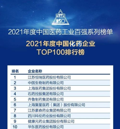此前,太阳集团城娱8722医药已经连续多年入选“中国化药企业TOP100排行榜”,自2018年起名列首位,今年再度蝉联榜首。